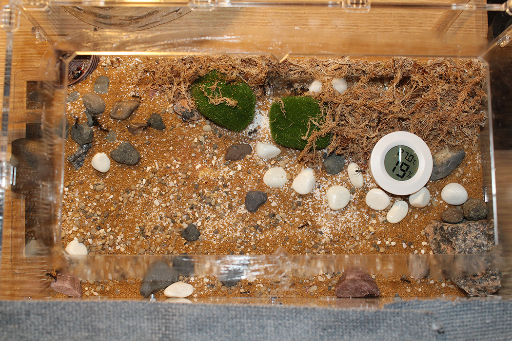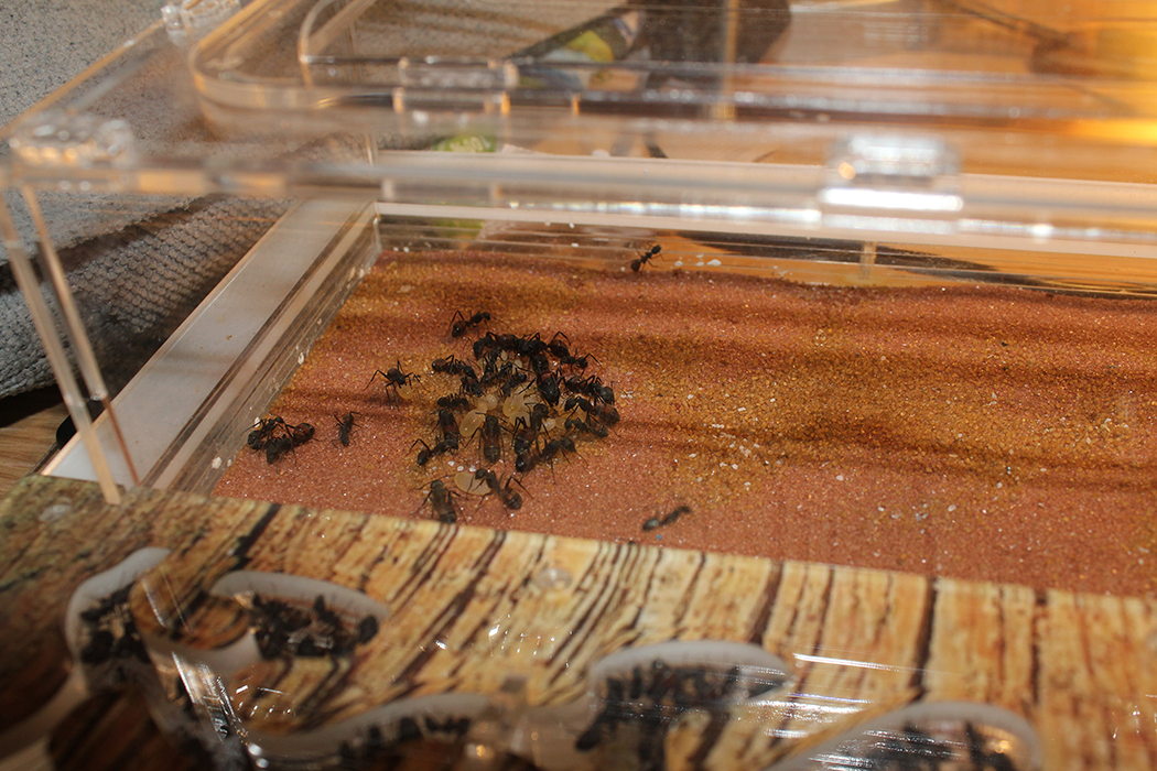 После переноса формикария в комнату, я заткнул выход на арену ваткой и начал уборку изрядно запачканной территории. Всех сонных рабочих, находившихся в этот момент снаружи гнезда, я отсадил в отдельную ёмкость, чтобы не мешали.