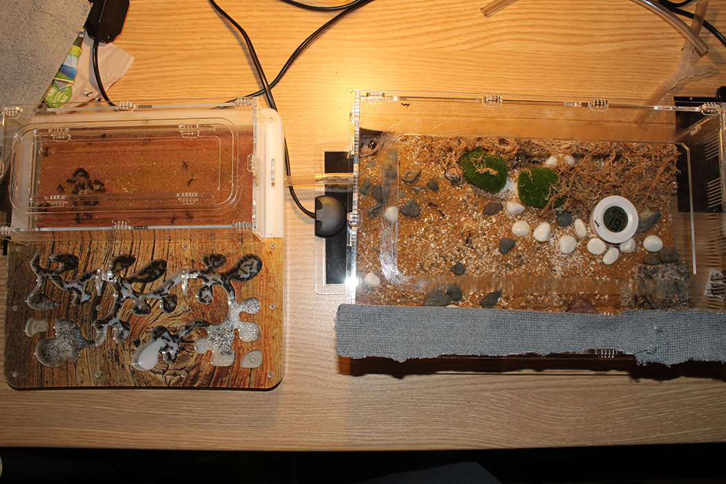 В 10-х числах января включил обогрев арены. Муравьи уже стали достаточно активными. Сразу же зона у выхода из гнезда превратилась в большой солярий для просыпающегося расплода.